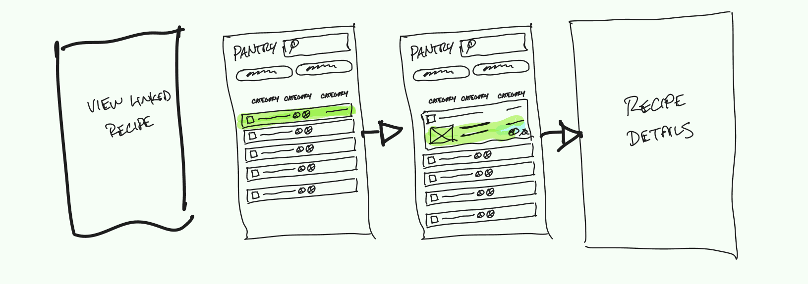 The early designs included a shopping list, which seemed like the natural response to the fragile-tracking problem, but a shopping list inside a pantry app asks users to change a habit that's already solved — most people have a system, however imperfect. The simpler answer: copy needed ingredients to the clipboard so they drop into whatever list app the user already uses. Same outcome, no behavior change required.